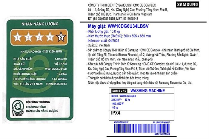 Đánh giá về Máy giặt Samsung AI EcoBubble Inverter 10 kg WW10DG6U34LBSV
