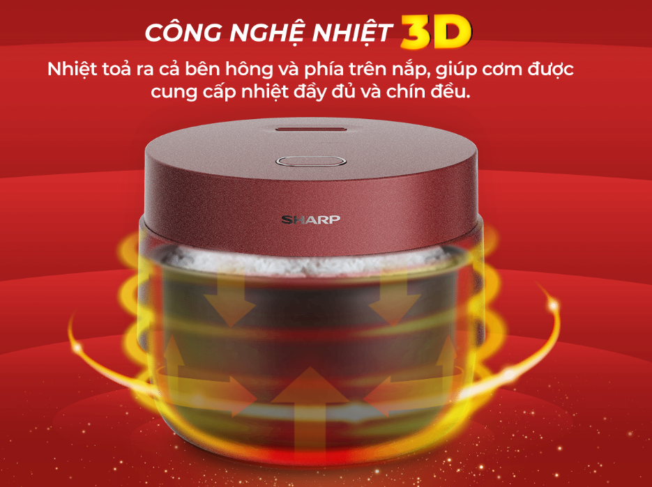 Tỏa nhiệt đều từ phía trên đến bên hông lòng nồi, giúp cơm được cung cấp nhiệt đầy đủ và chín đều.
